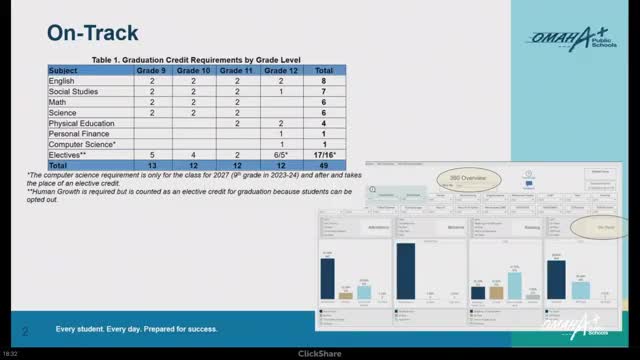 Omaha Public Schools reports modest gains in high‑school "on‑track" rates; attendance and summer credit recovery cited