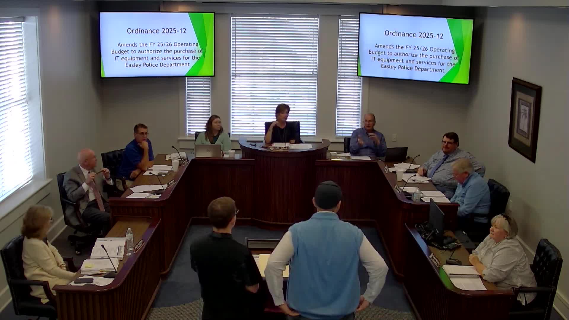 Easley council holds second readings and resolutions; votes to enter executive session on pending claim