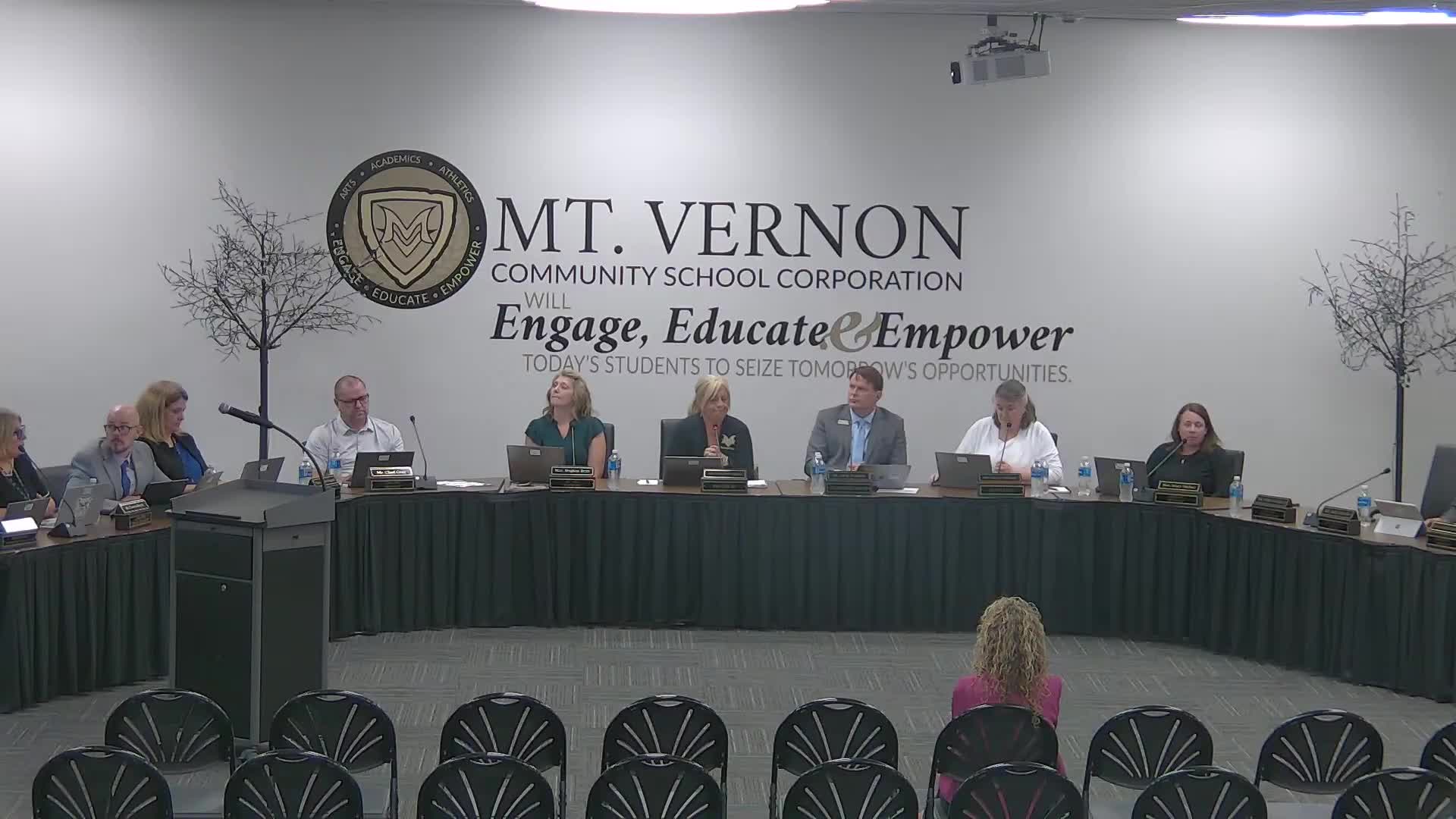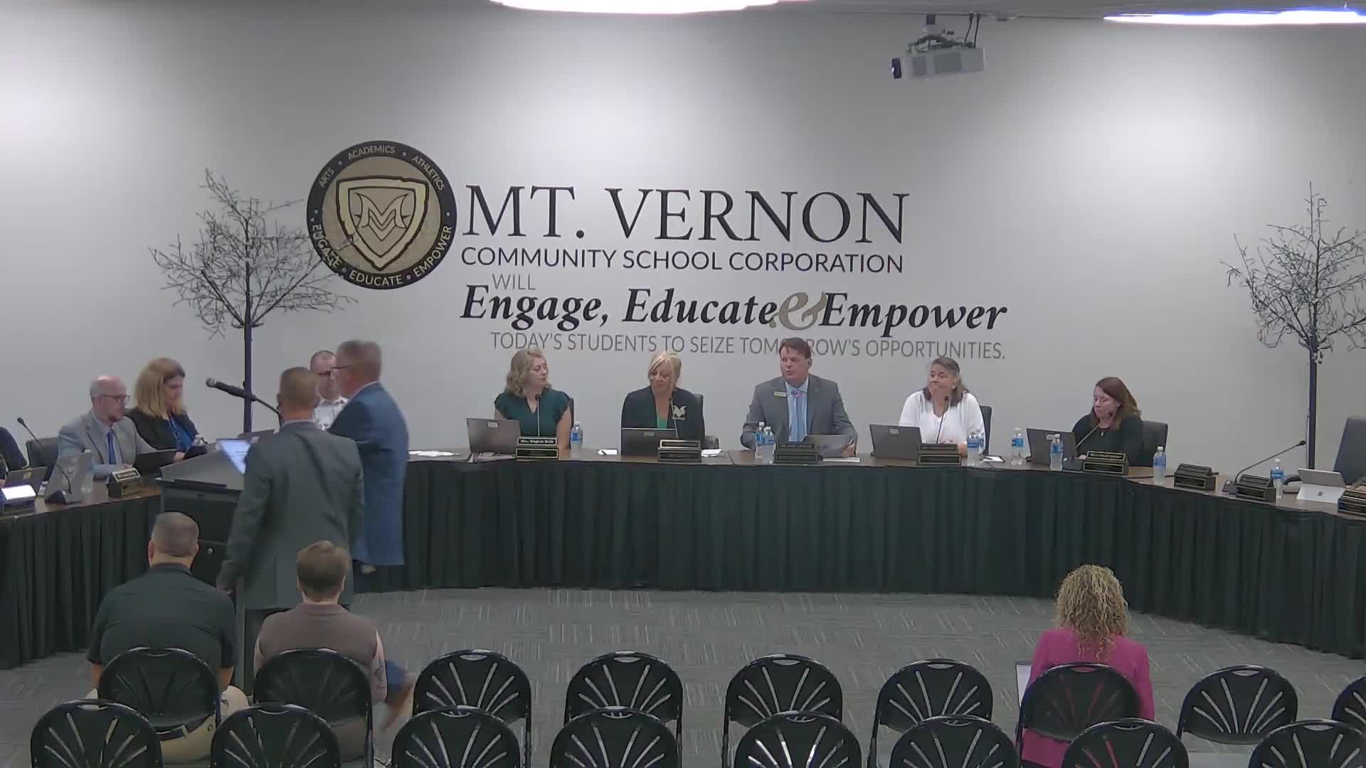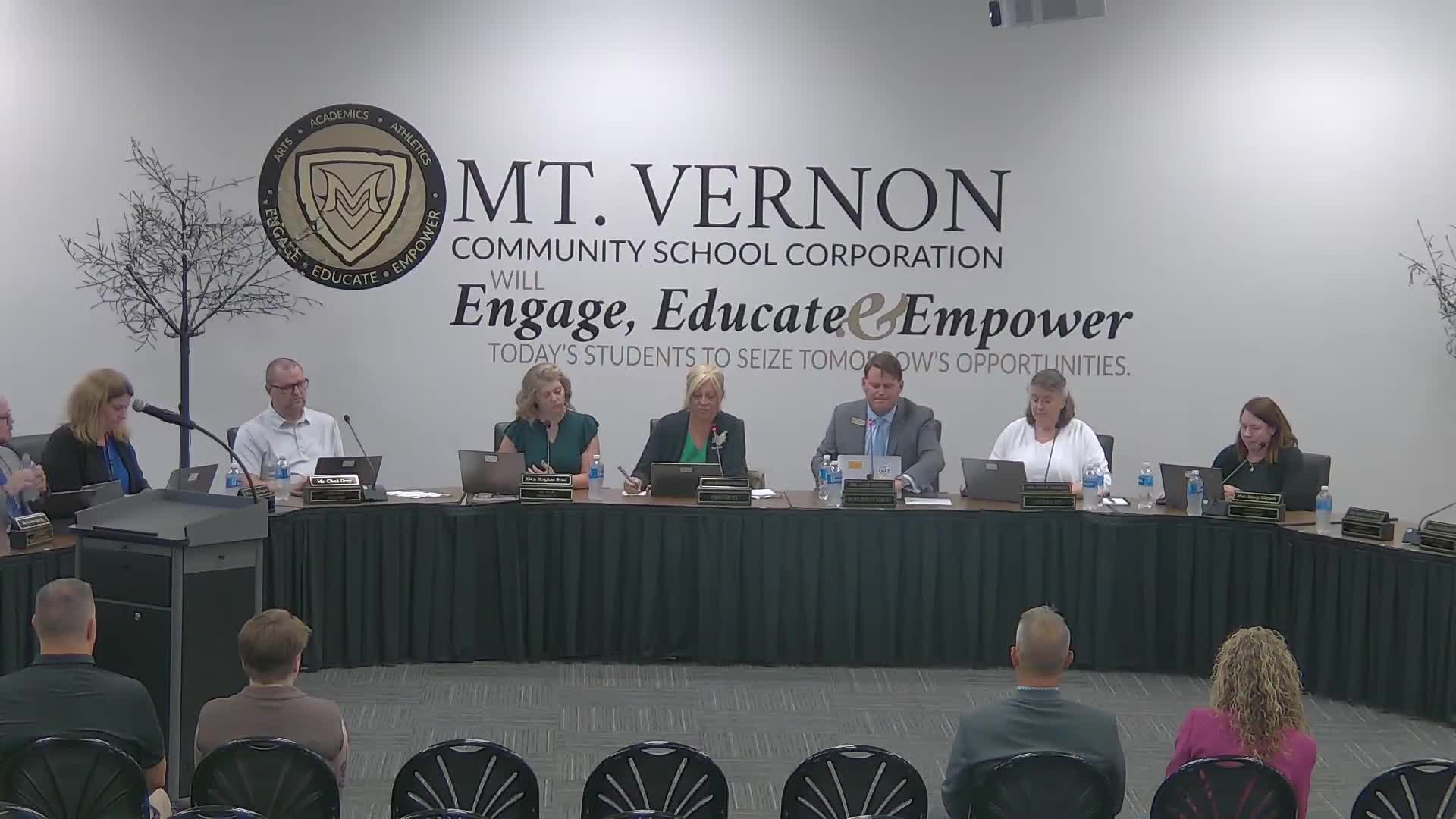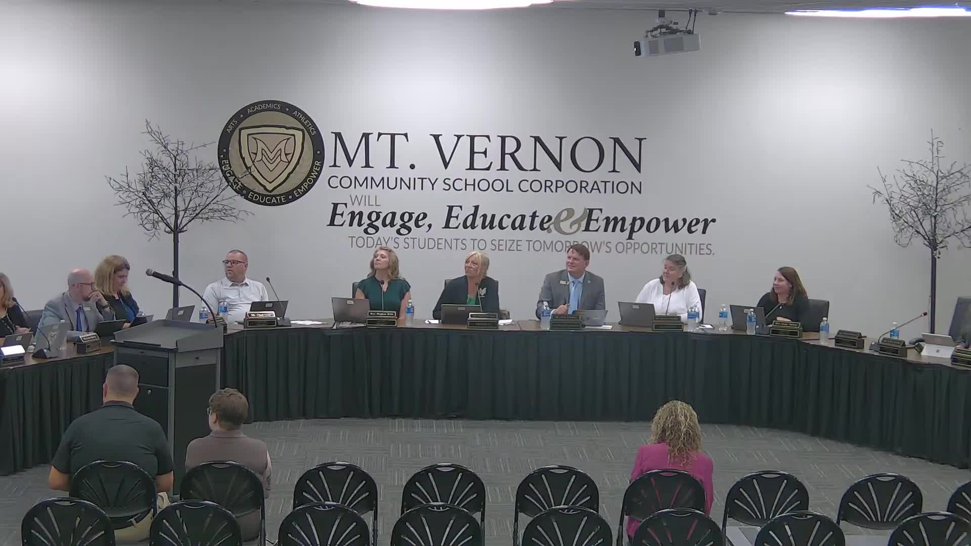 Votes at a glance: motions approved at the Mt Vernon Community School Corp meeting (5-0 unless noted)