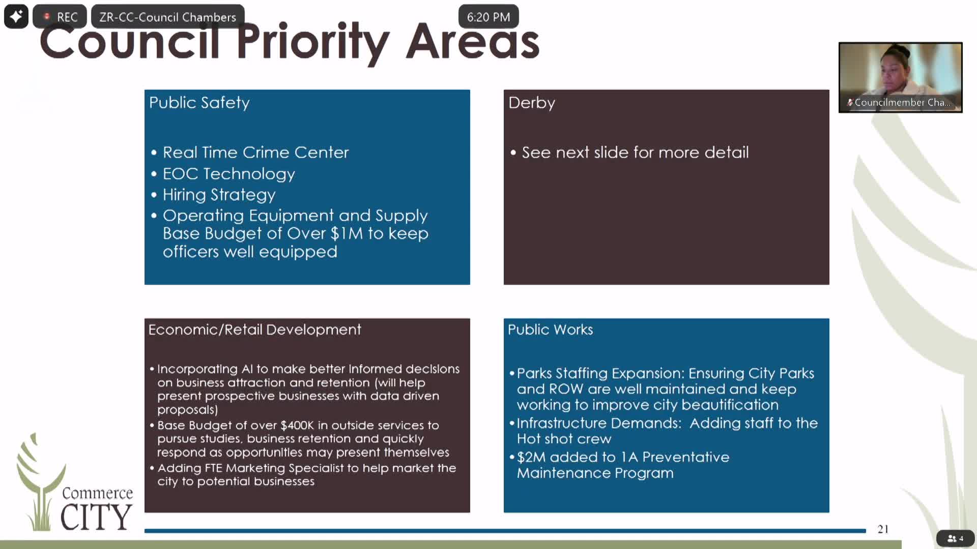 Commerce City outlines Derby commercial-area plan and marketing push; staff proposes studies and a new marketing specialist