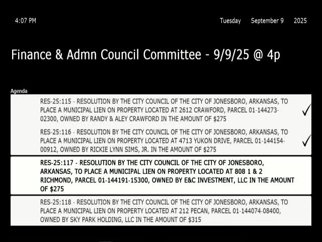 Committee forwards eight municipal‑lien resolutions to full Jonesboro City Council