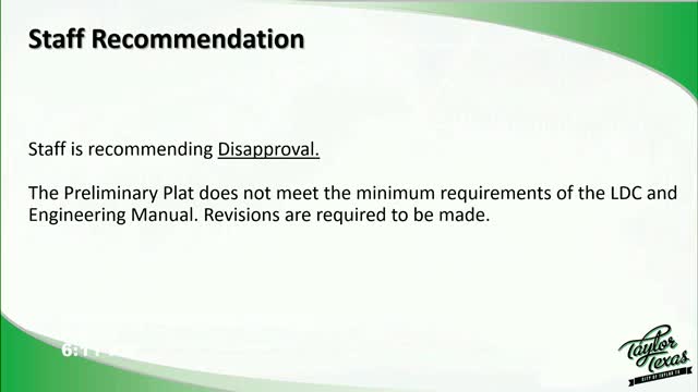 Taylor P&Z votes 8-0 to approve City View Plaza preliminary plat despite staff recommending disapproval