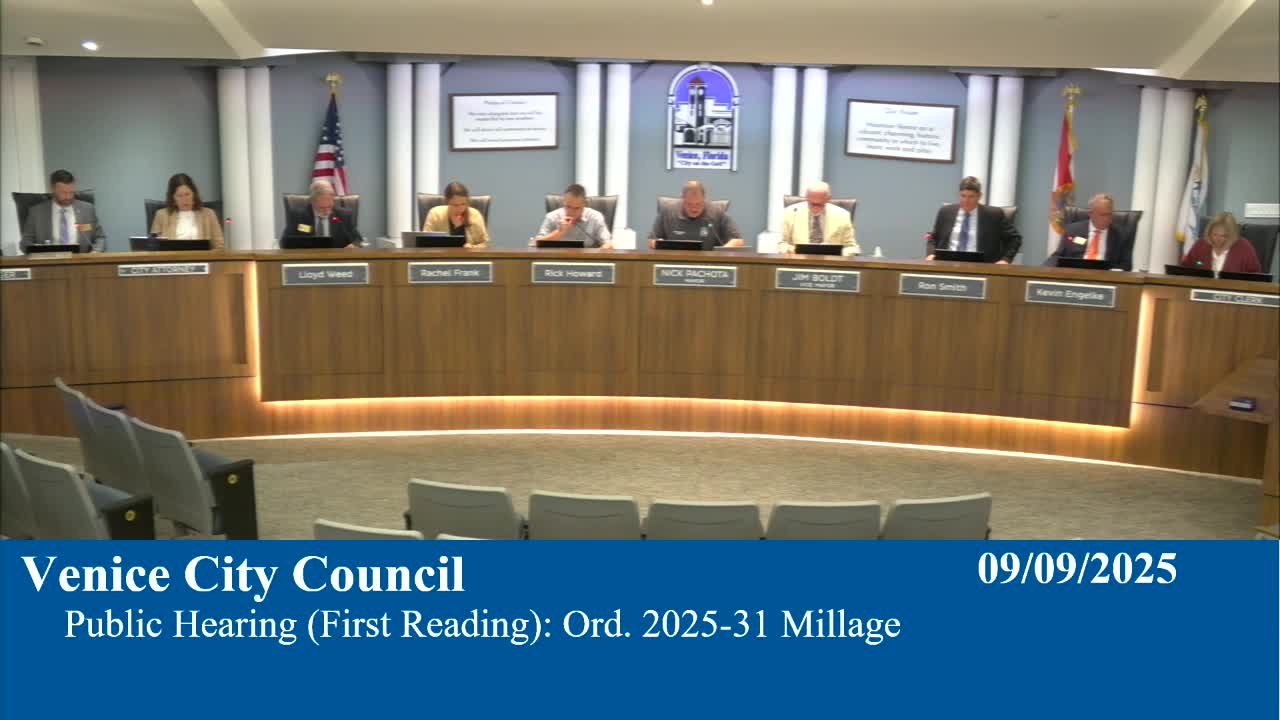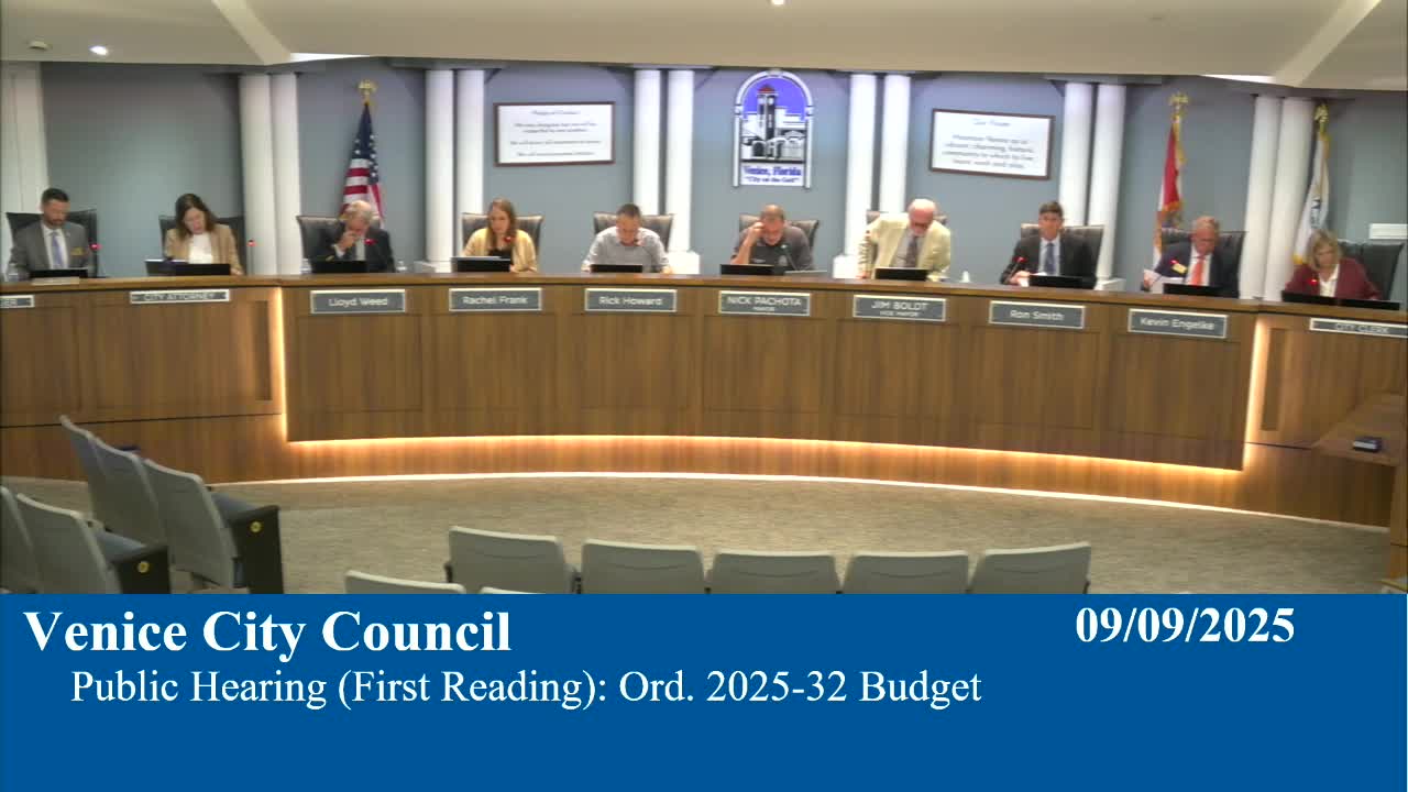 Venice council adopts FY2025-26 budget ordinance on first reading; ordinance to be adjusted to match approved millage