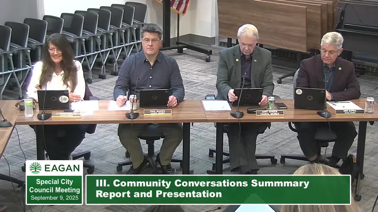 Eagan presents community-conversations summary, plans open house and annual summit