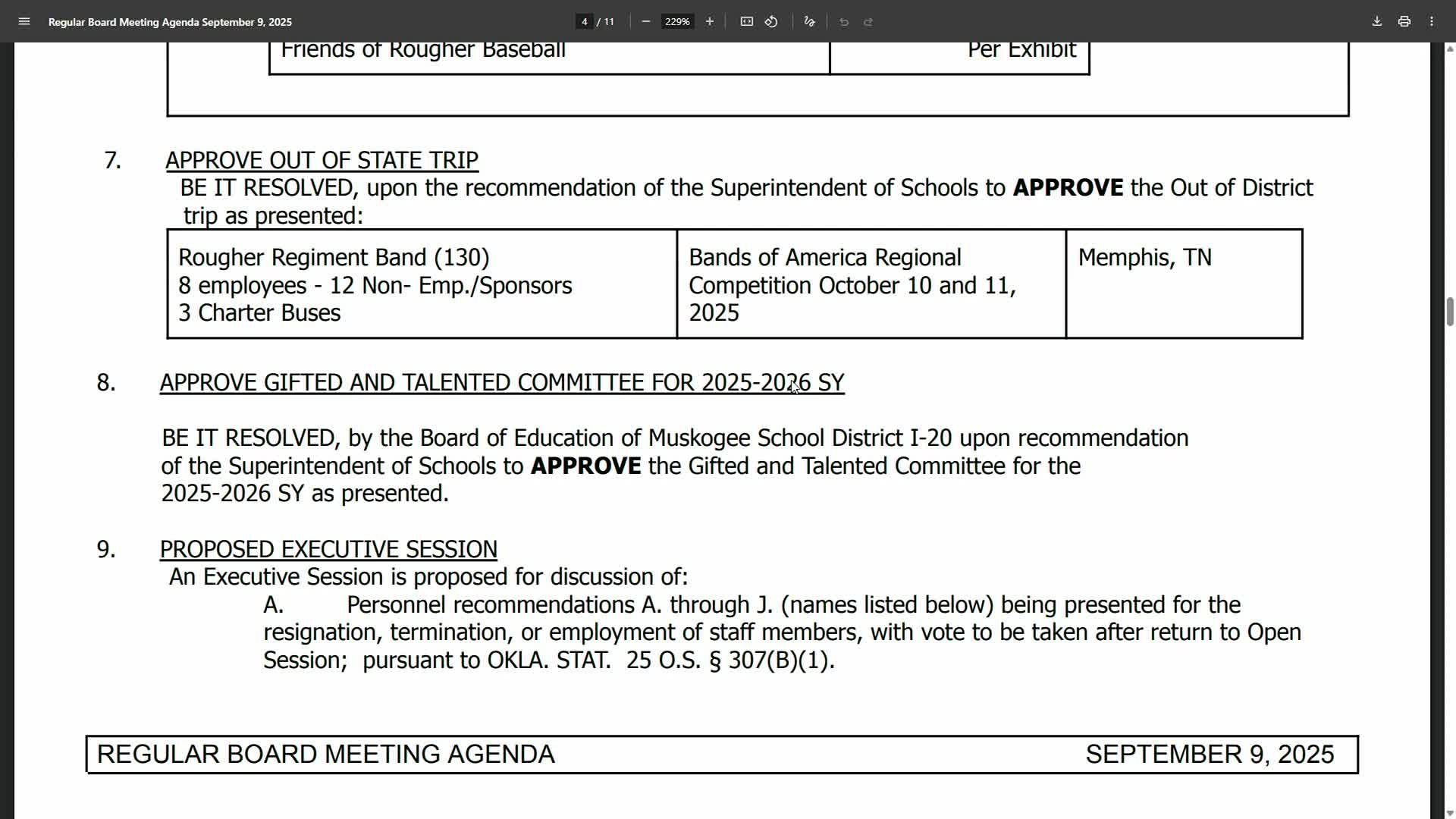 Muskogee school board approves consent agenda, band trip and personnel actions
