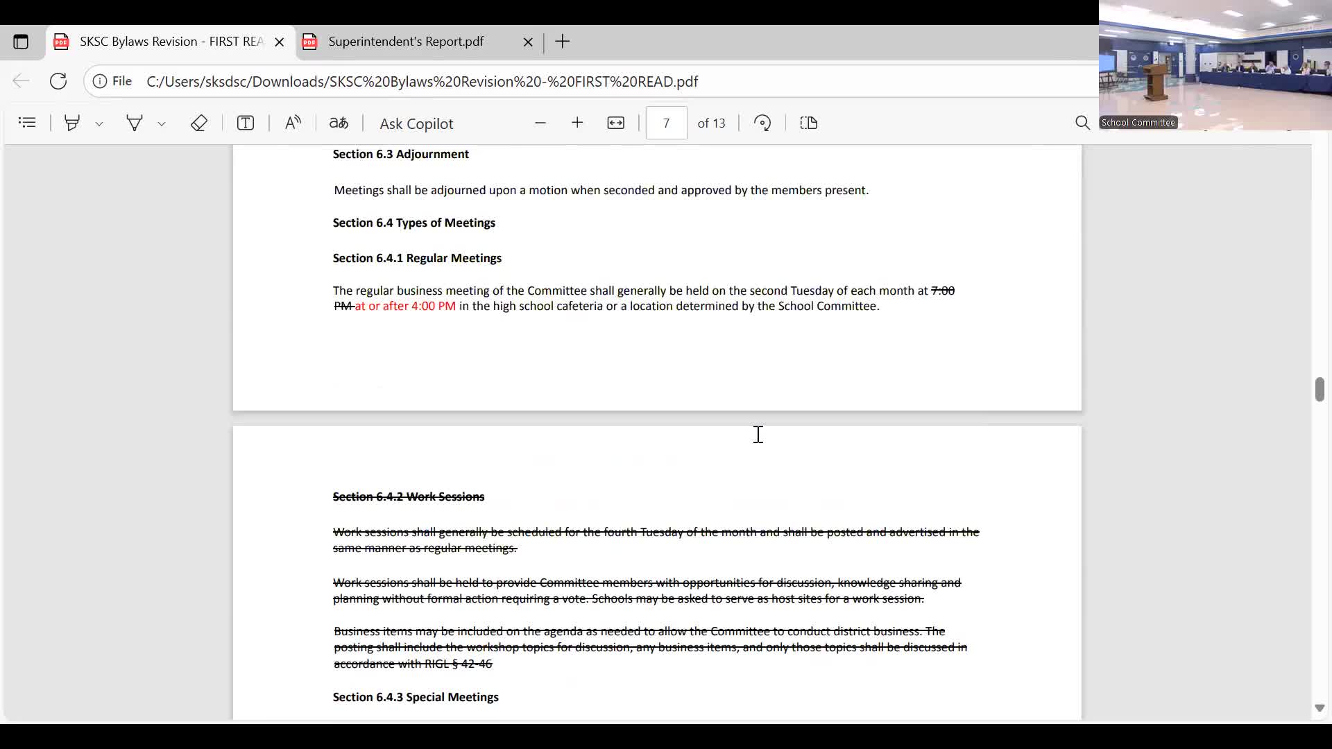 School committee conducts first reading of bylaw revisions, schedules second reading