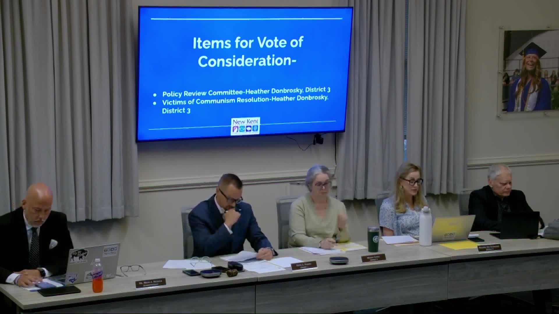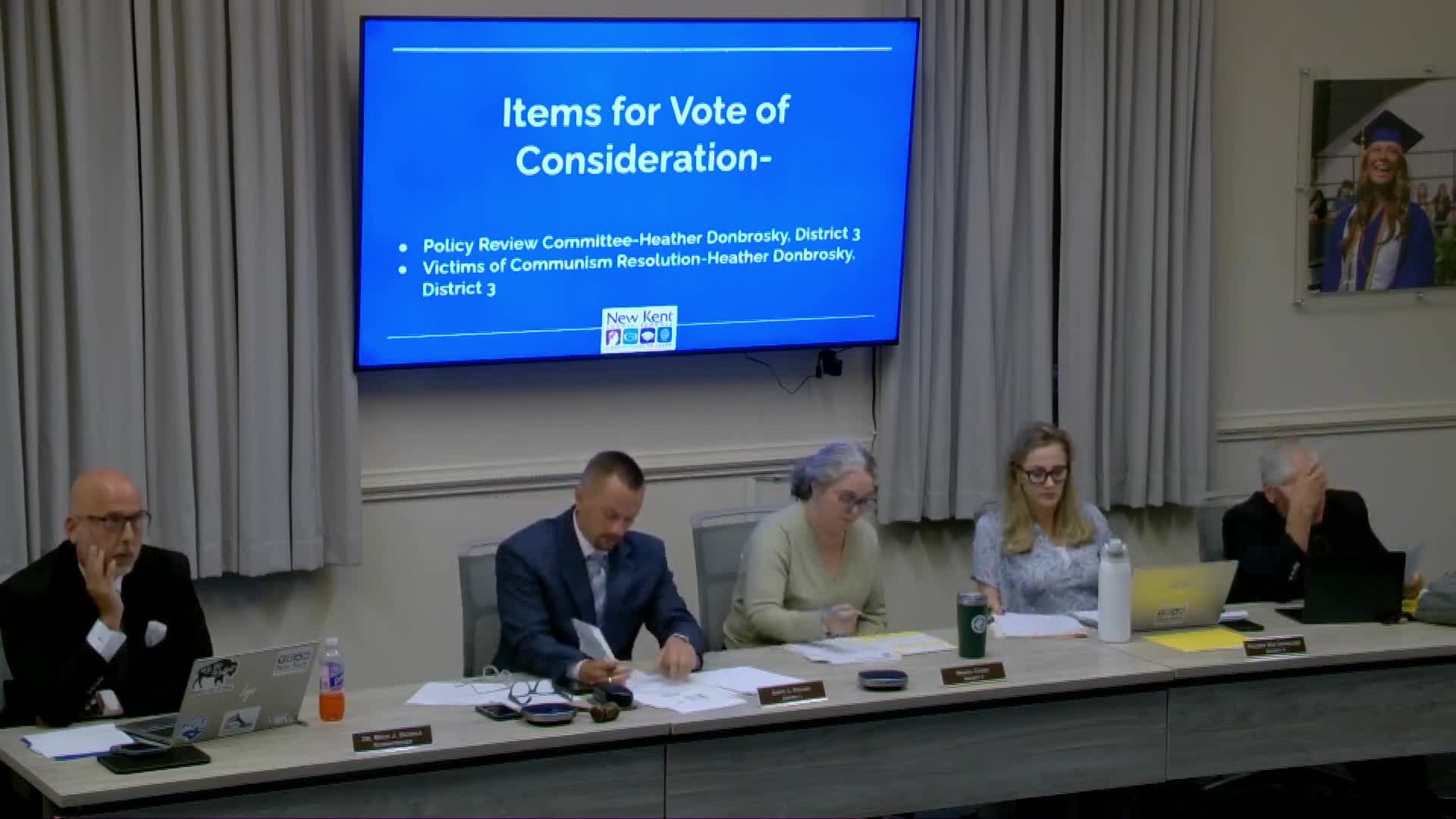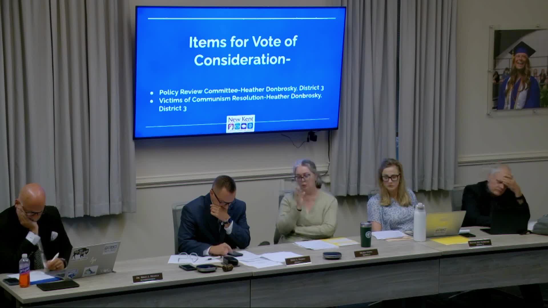 Board agrees to consider Victims of Communism resolution; discussion centers on curriculum overlap