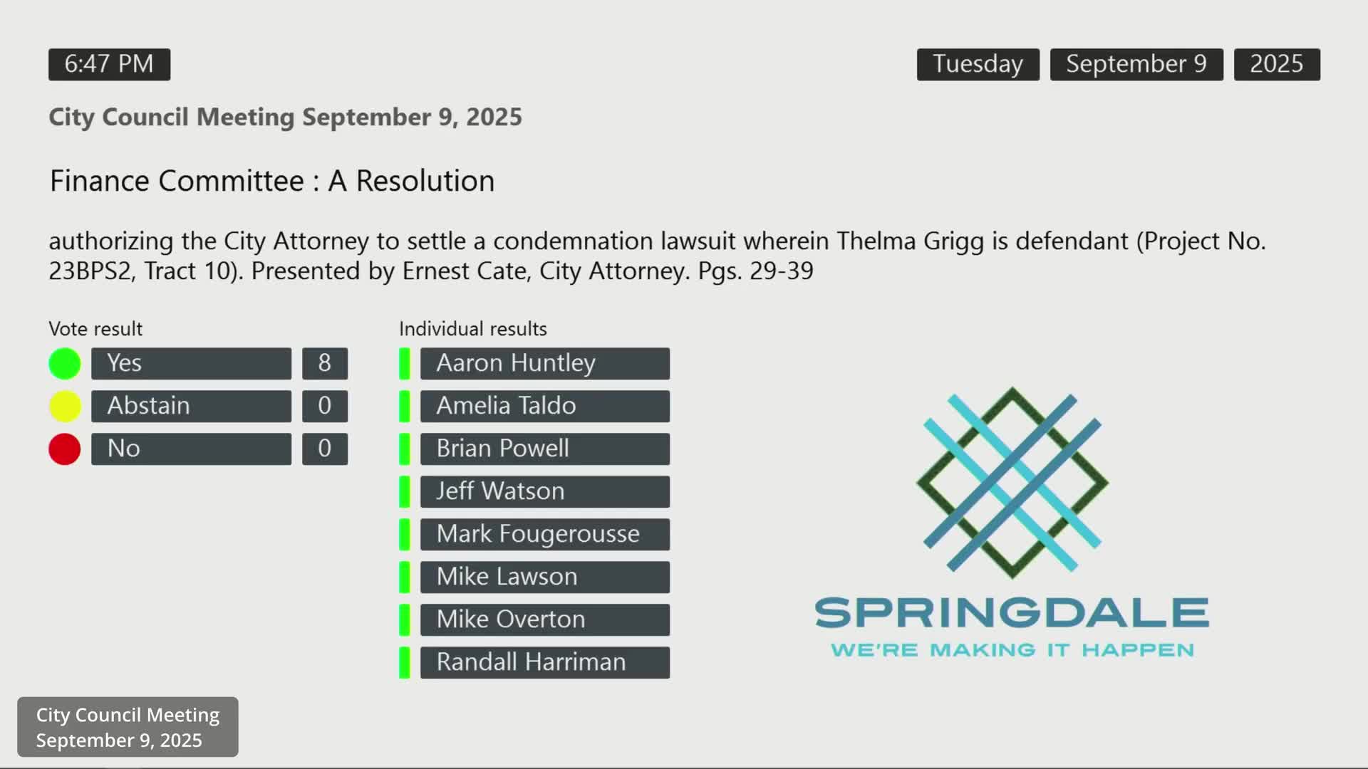 Council authorizes cleanup lien and emergency action for overgrown property at 1160 Bowe Lane