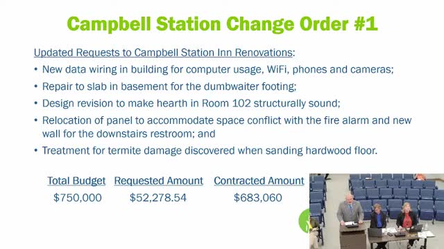 Board approves $52,278 change order and schedule extension for Campbell Station Inn renovation