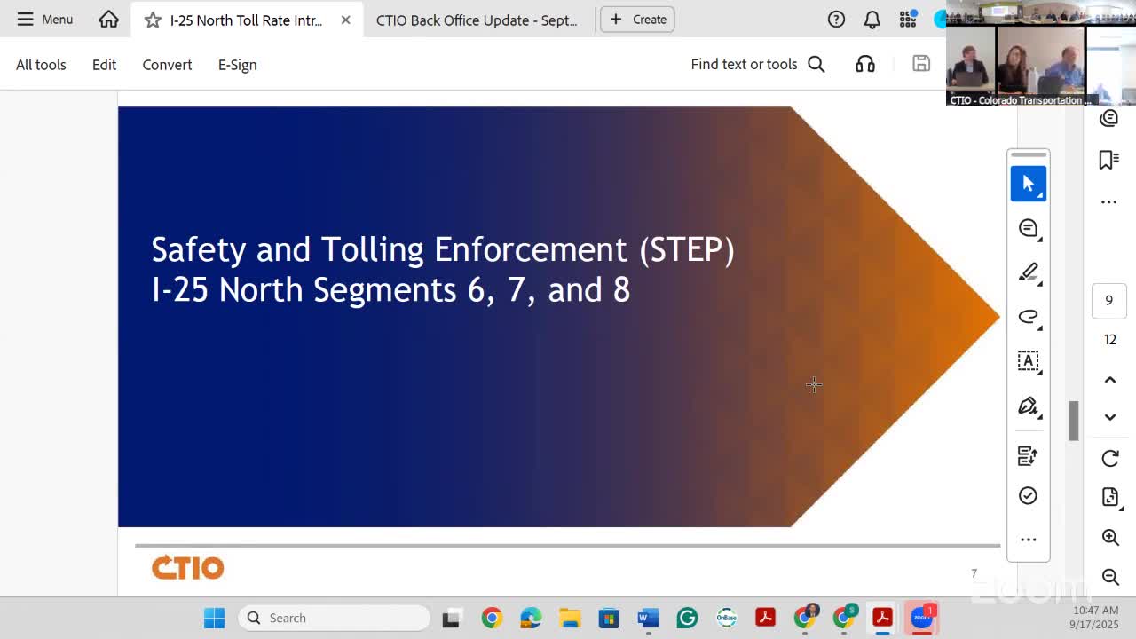 CTIO outlines communications and STEP enforcement plan for I‑25 North; staff highlights 92% drop in express‑lane violations