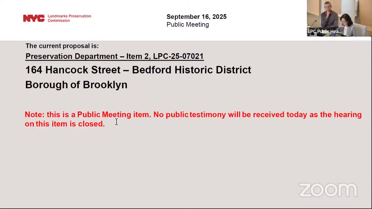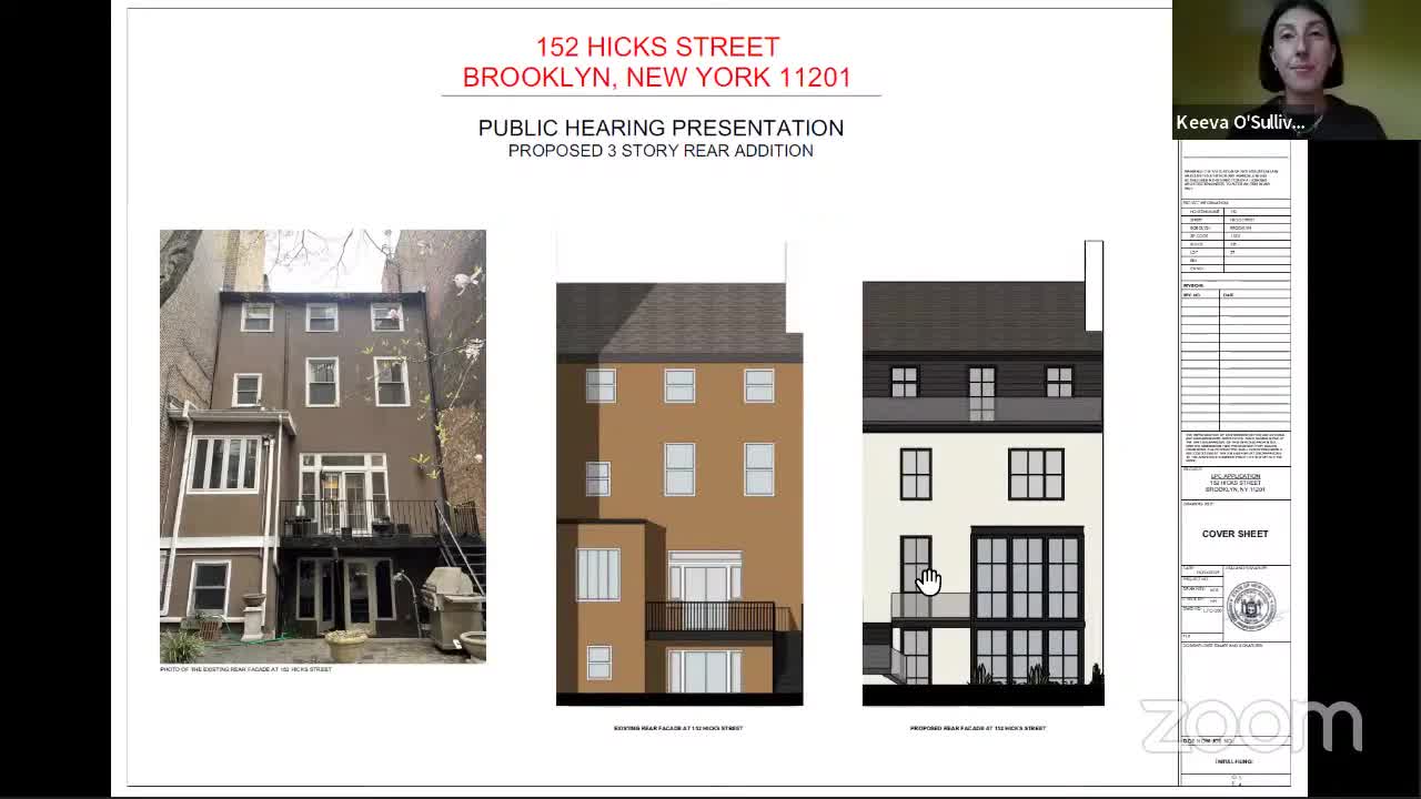 Commission approves three‑story rear addition at 152 Hicks Street with material and design conditions