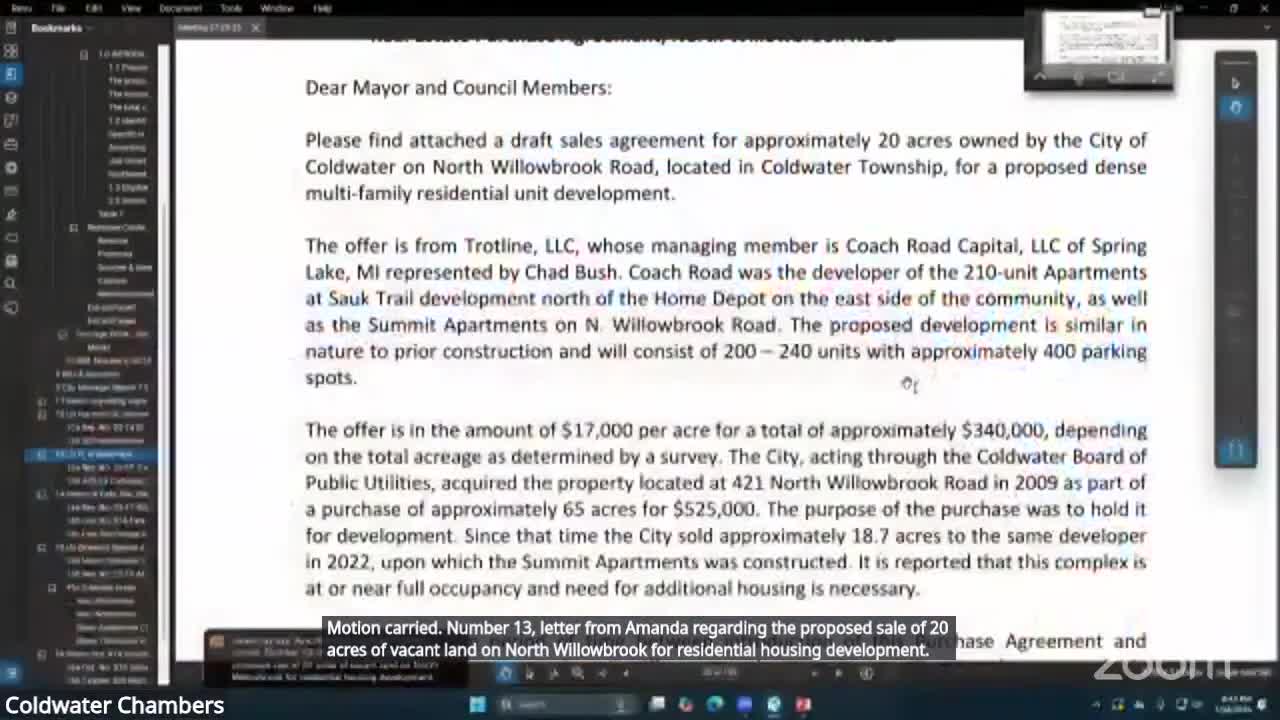 Council approves sale of 20 acres on North Willowbrook; lift station, TIF and infrastructure costs discussed