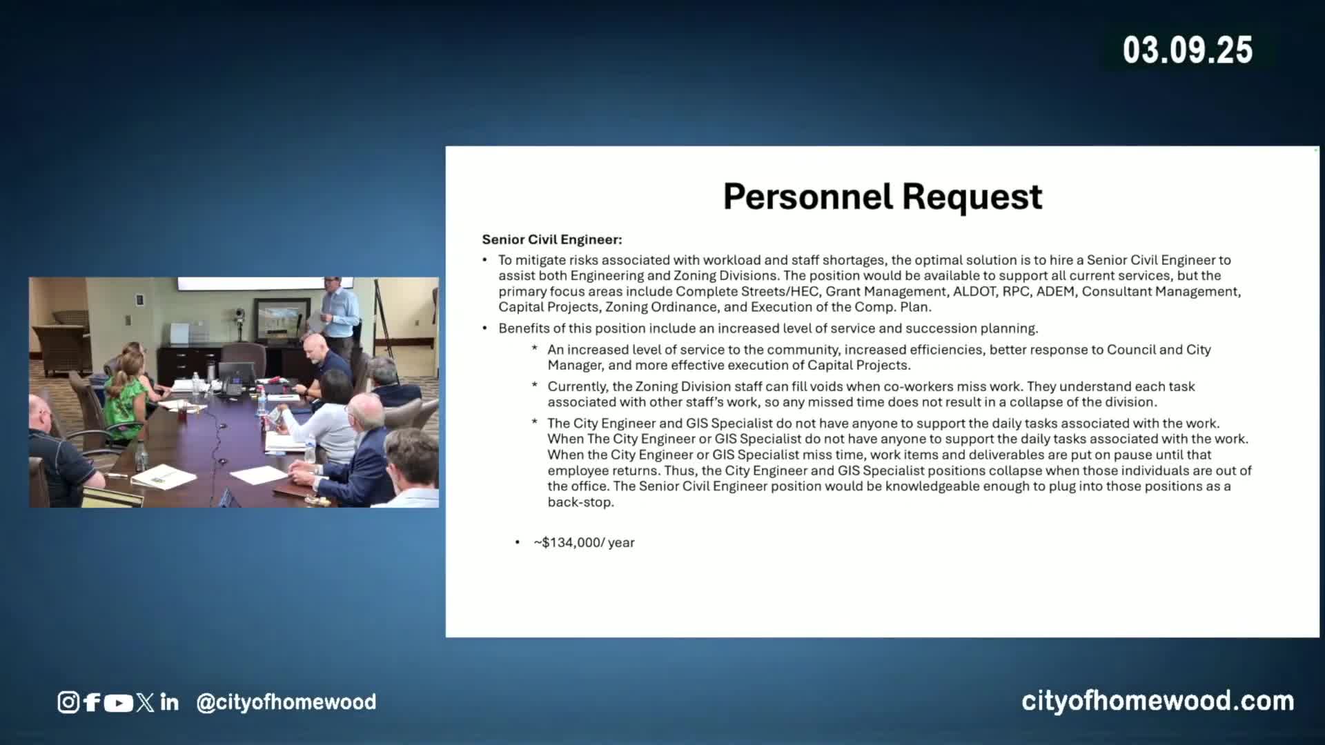Engineering department seeks senior civil engineer as capital spending ramps up; committee reviews projects