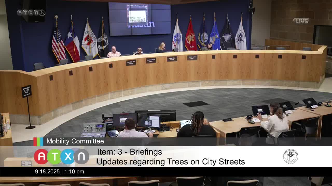 Mobility committee briefed on TARP—indings and 12 recommendations to ease barriers to street trees in Austin