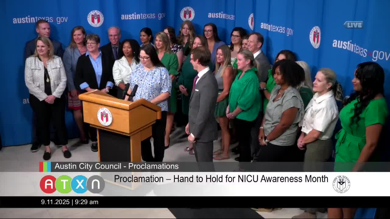 Austin proclaims September 2025 as NICU Awareness Month; Hand to Hold and hospitals recognized
