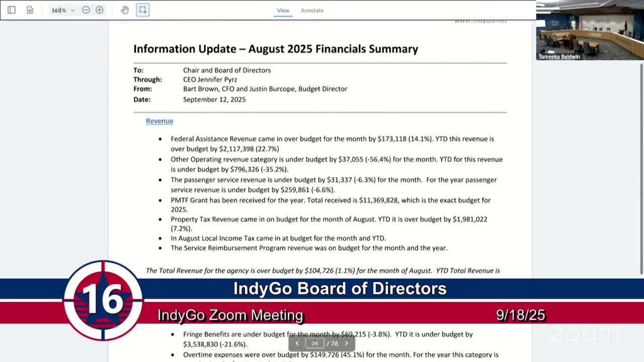 IndyGo CFO reports August revenue above budget; expenditures under budget for month