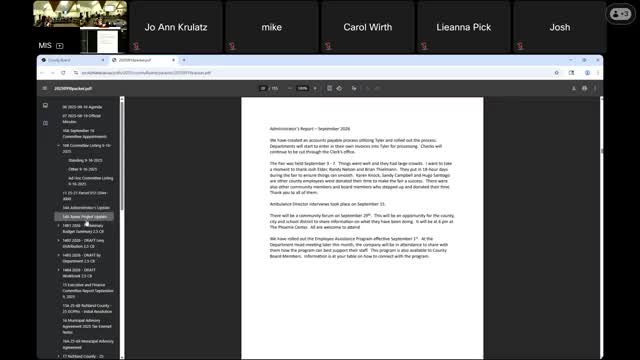 Richland County administrator outlines 2026 preliminary budget, flags $300k general-fund use and highway levy concerns