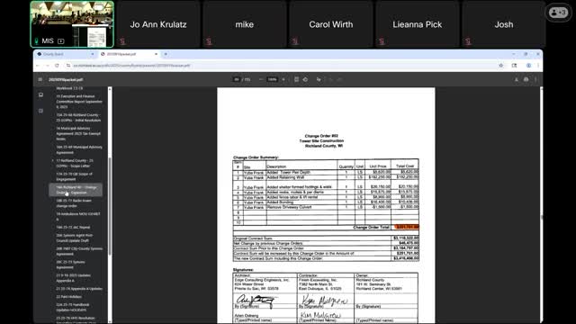 Board approves $251,701 change order for final radio tower site after retaining wall and site issues increase costs