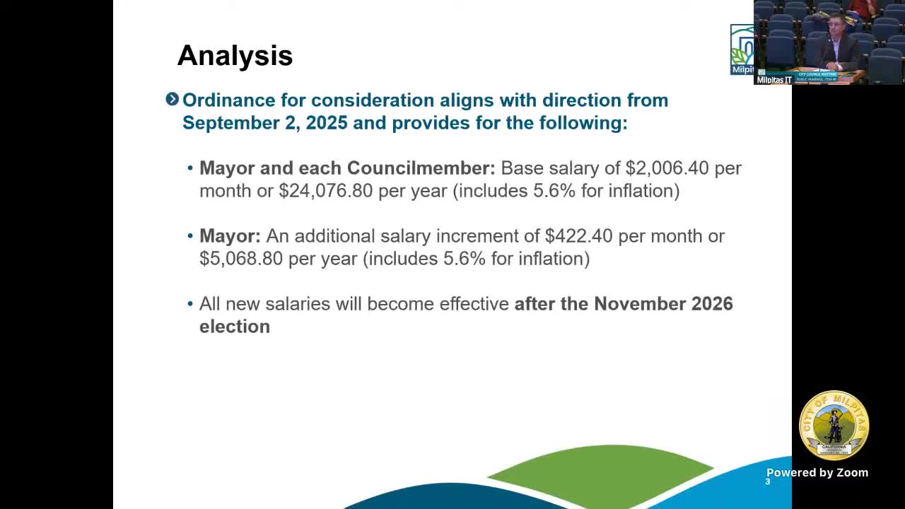 Milpitas City Council approves pay increase for mayor and council; changes take effect after next election