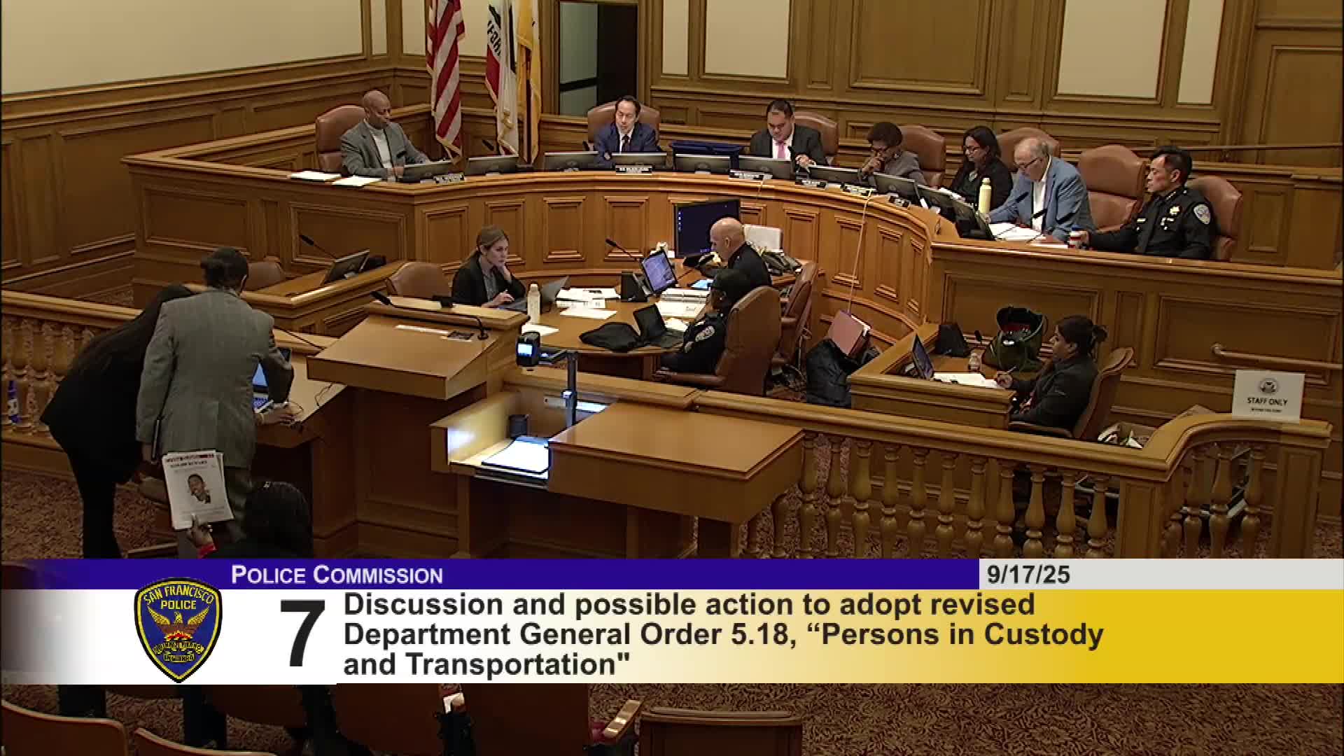 Police Commission adopts two revised department orders, votes to close and not disclose closed session
