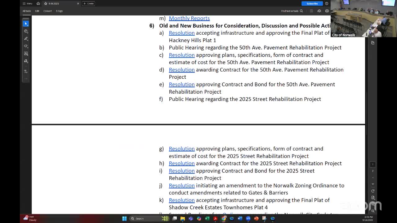 Norwalk council approves paving and street contracts, plats and several code amendments; summaries and vote results