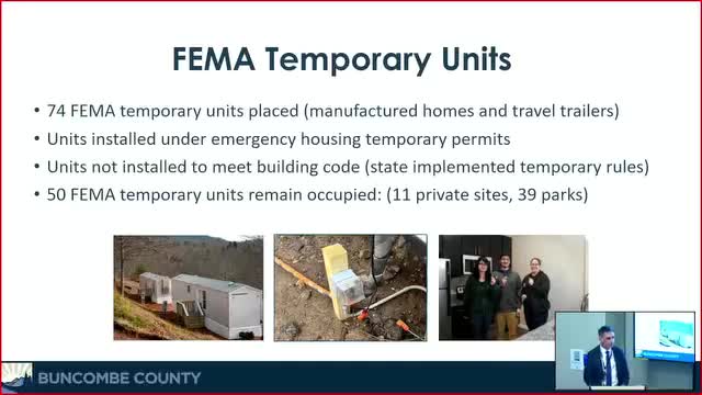 FEMA temporary units in Buncombe: 74 installed, 50 occupied; Renew NC single-family program opens