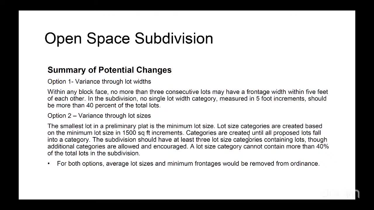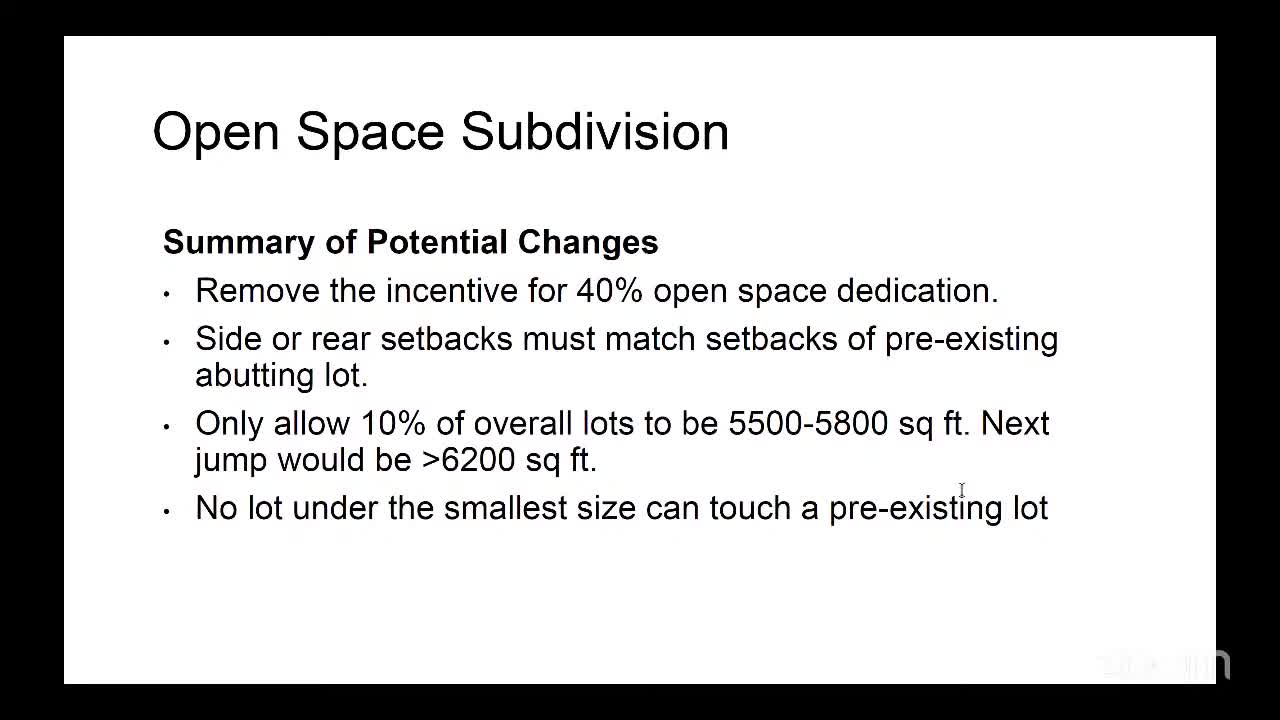 Commission debates open‑space subdivision rules: setbacks, lot‑size variation and incentives
