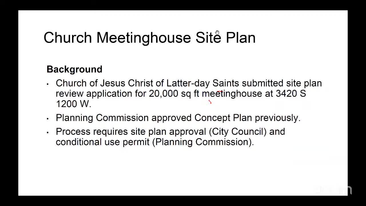 Planning commission recommends approval of LDS meetinghouse site plan, approves conditional‑use permit for 3420 S. 1200 W.