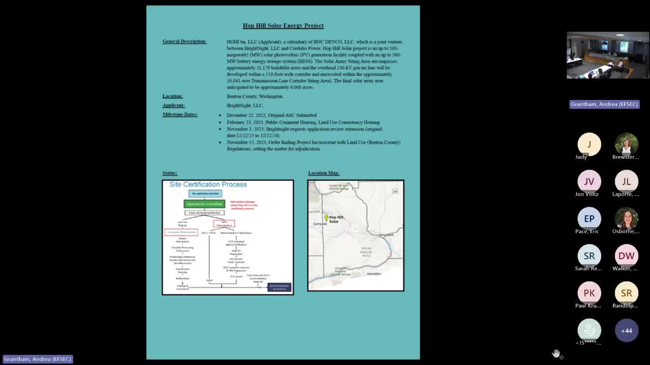 FSEC awaits supplemental materials for Hop Hill and Wallula Gap projects; SEPA and wetland reviews pending