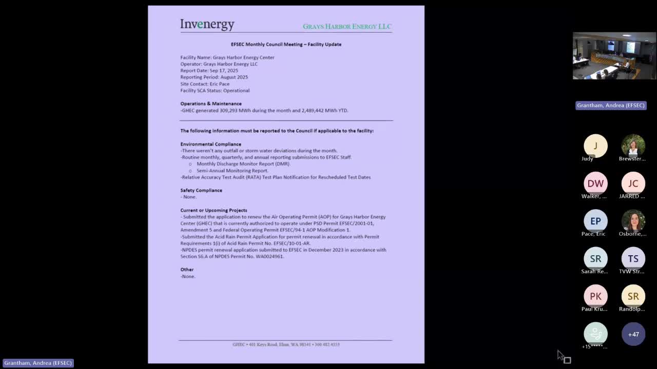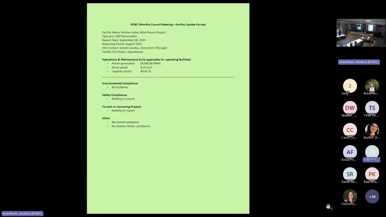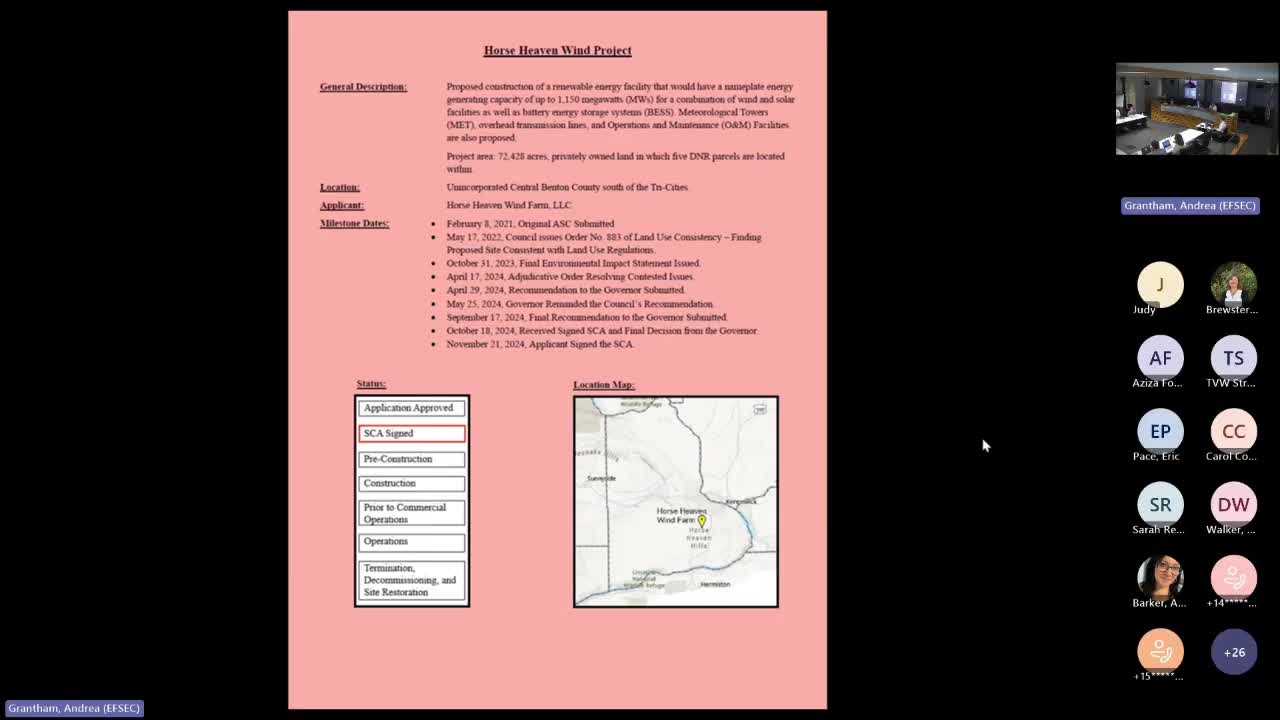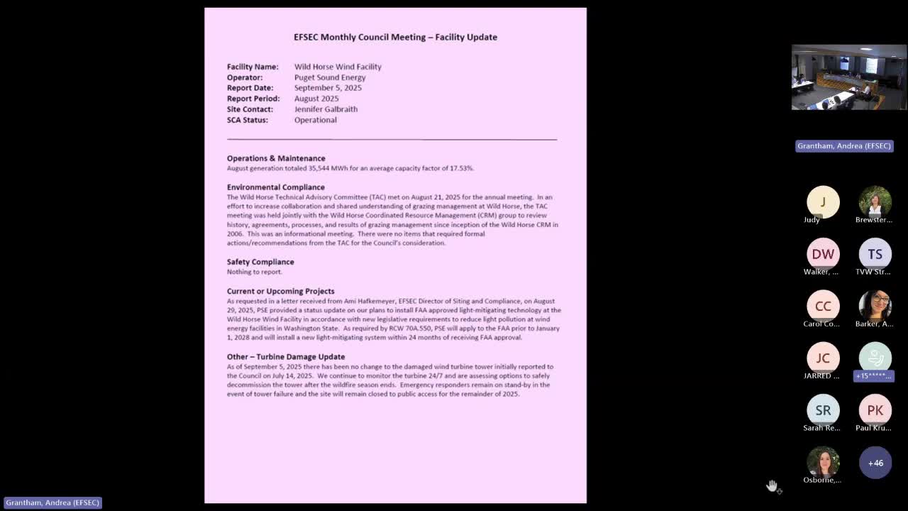 EFSEC receives operational briefings: Kittitas, Columbia, Goose Prairie, Austria and Columbia Generating Station report routine activity