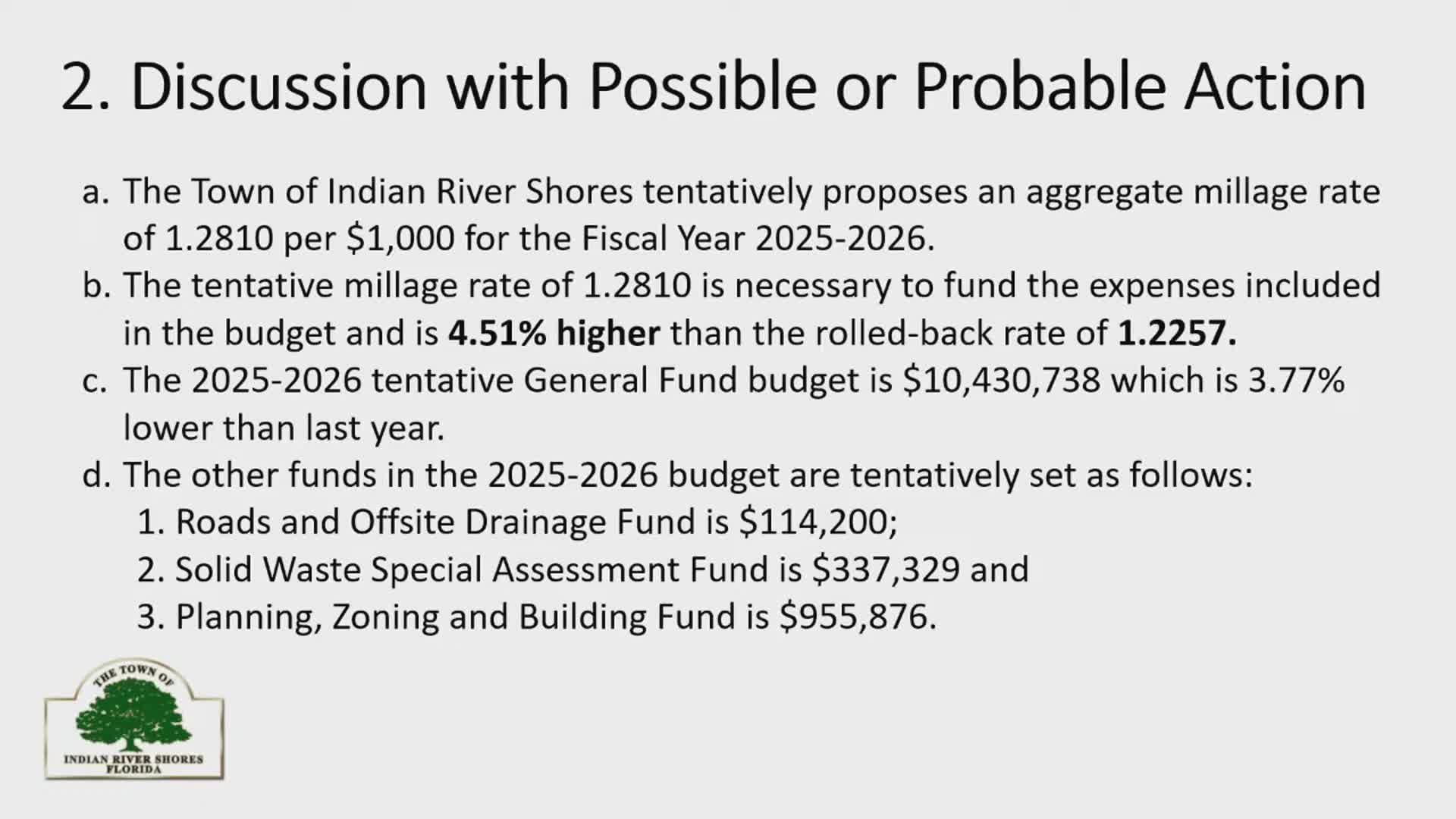 Indian River Shores council adopts tentative 2025–26 millage rate and budget