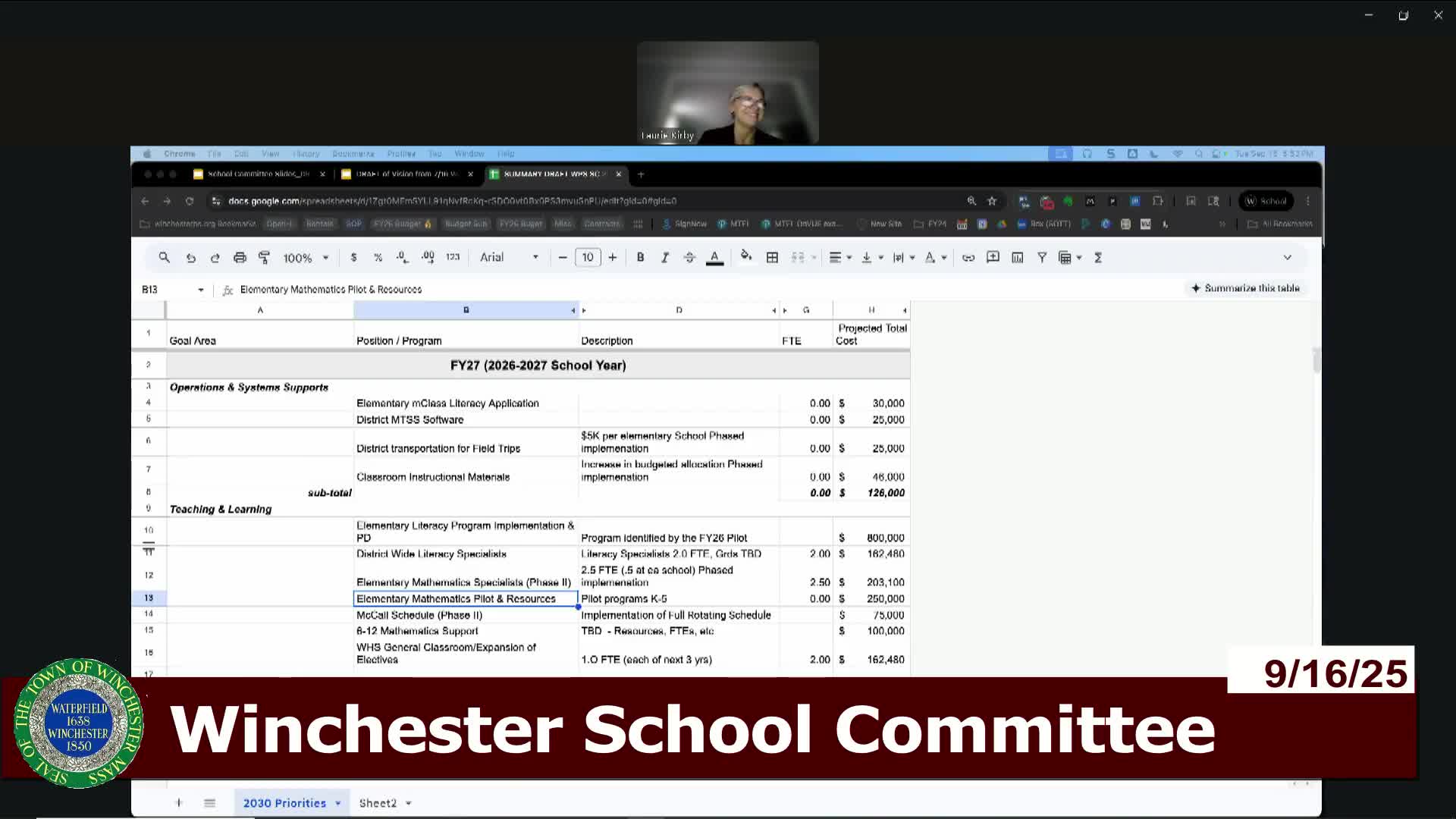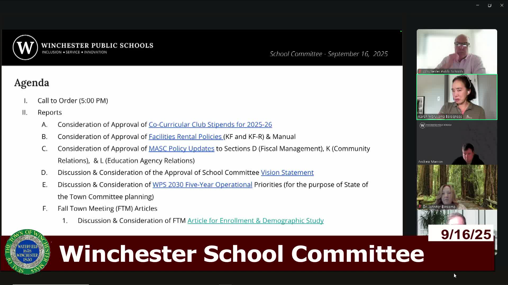 Committee authorizes superintendent to share WPS 2030 priorities with State of the Town; recommends $4.5 million five‑year investment