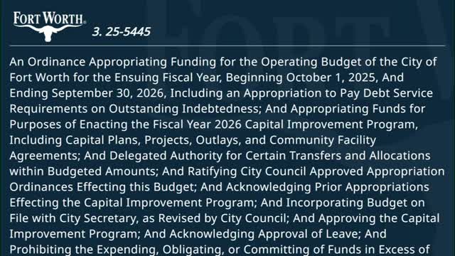 Fort Worth adopts FY2026 budget and lowers tax rate by a quarter-cent; average homeowner to save about $20