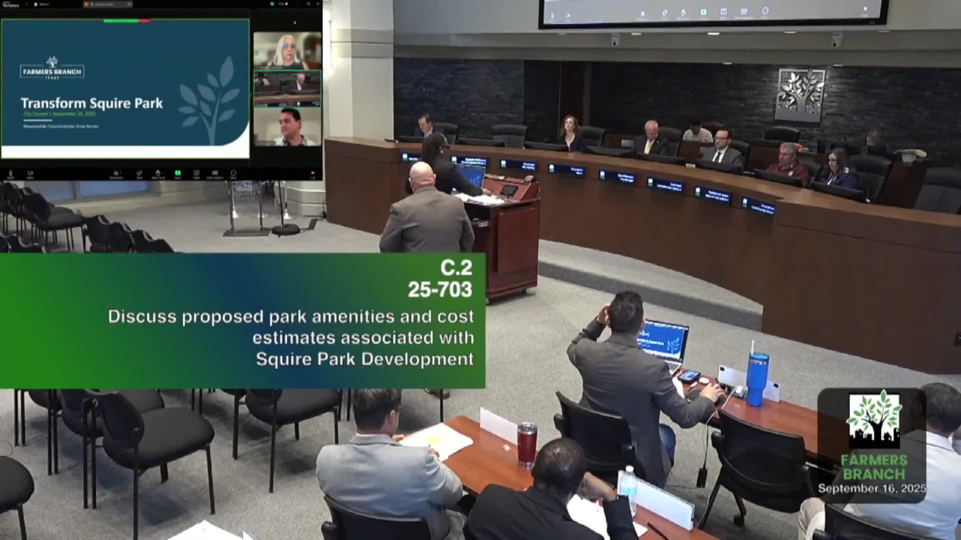 Farmers Branch council reviews Squire Park overhaul; debate centers on splash pad, parking and costs