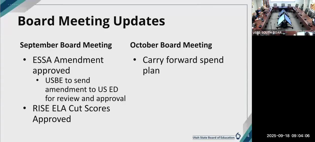 USBE says ESSA amendment submitted to Department of Education; board approved RISE ELA cut scores pending federal review