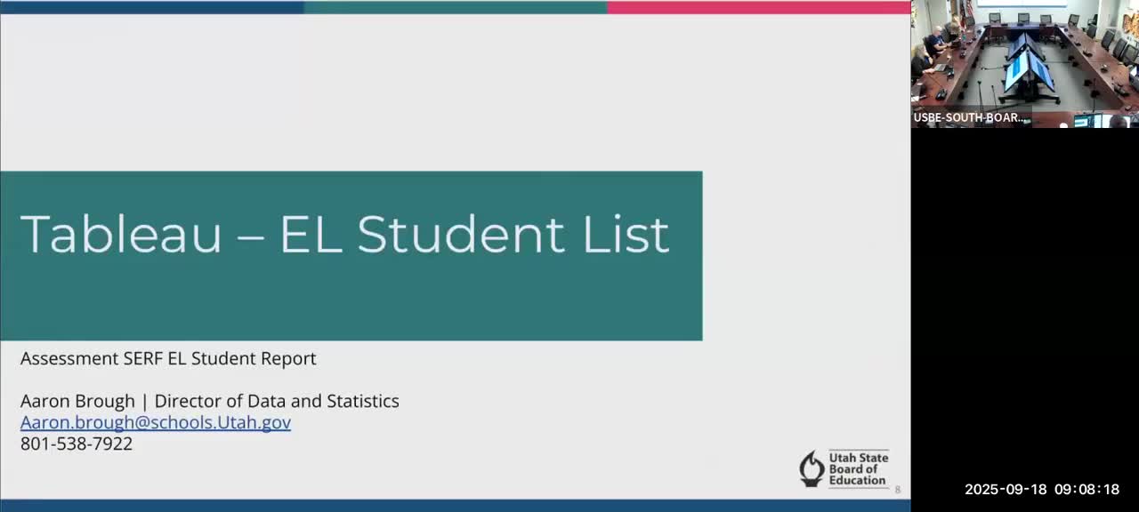 USBE demonstrates live EL student report in Tableau; reiterates WIDA/ACCESS exit and screening rules
