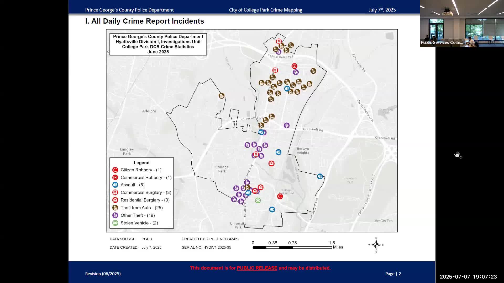 College Park meeting updates enforcement: truck inspections, noise and stop-sign camera pilots, National Night Out plans