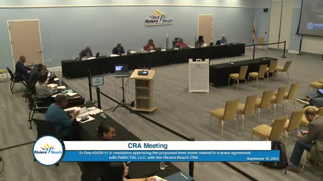 Riviera Beach CRA adopts FY2025–26 budget; board adds mayor reimbursement line item and approves 6% COLA