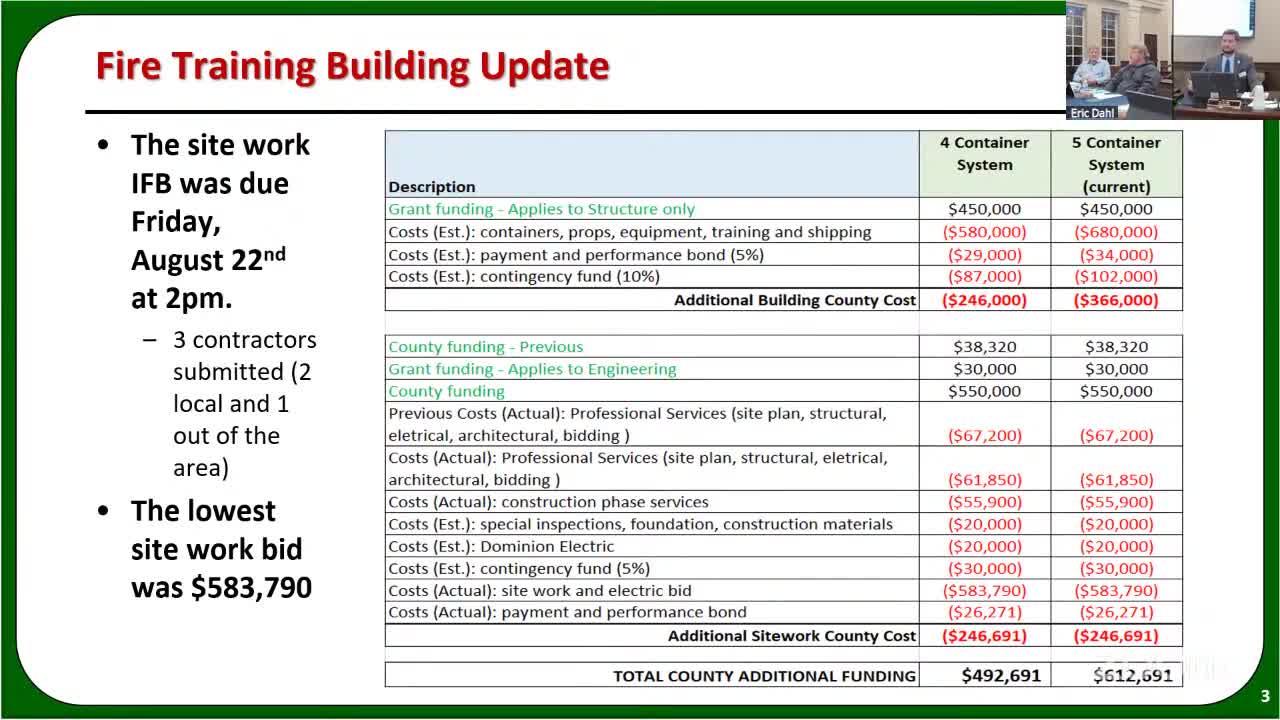 Fluvanna supervisors approve $615,000 funding cap and sign site contract for county fire training building