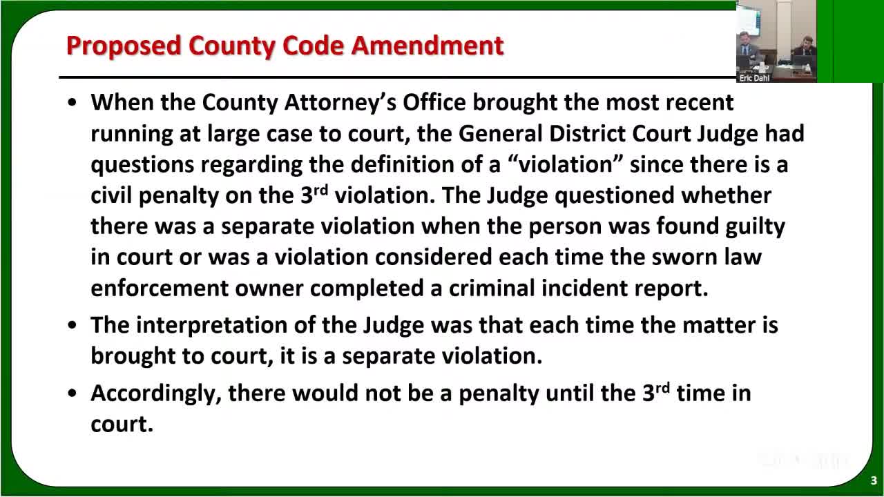 Board adopts civil-penalty structure for dogs running at large; fines set at $100, $200, $500