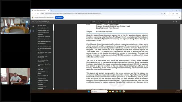 Council approves budget amendment and conditional purchase of bucket truck from Alpena Power