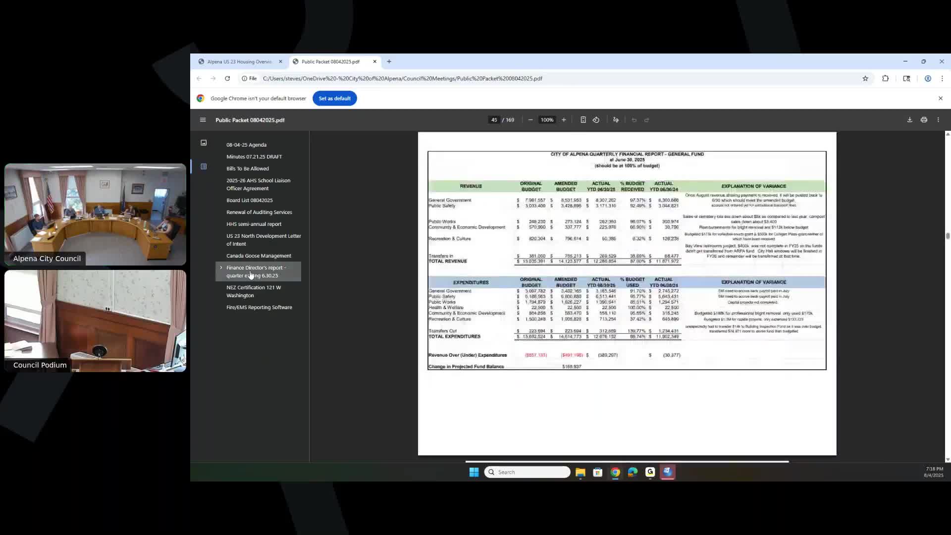 Finance director presents preliminary FY24‑25 fourth‑quarter results; city fund balances stronger than earlier estimates