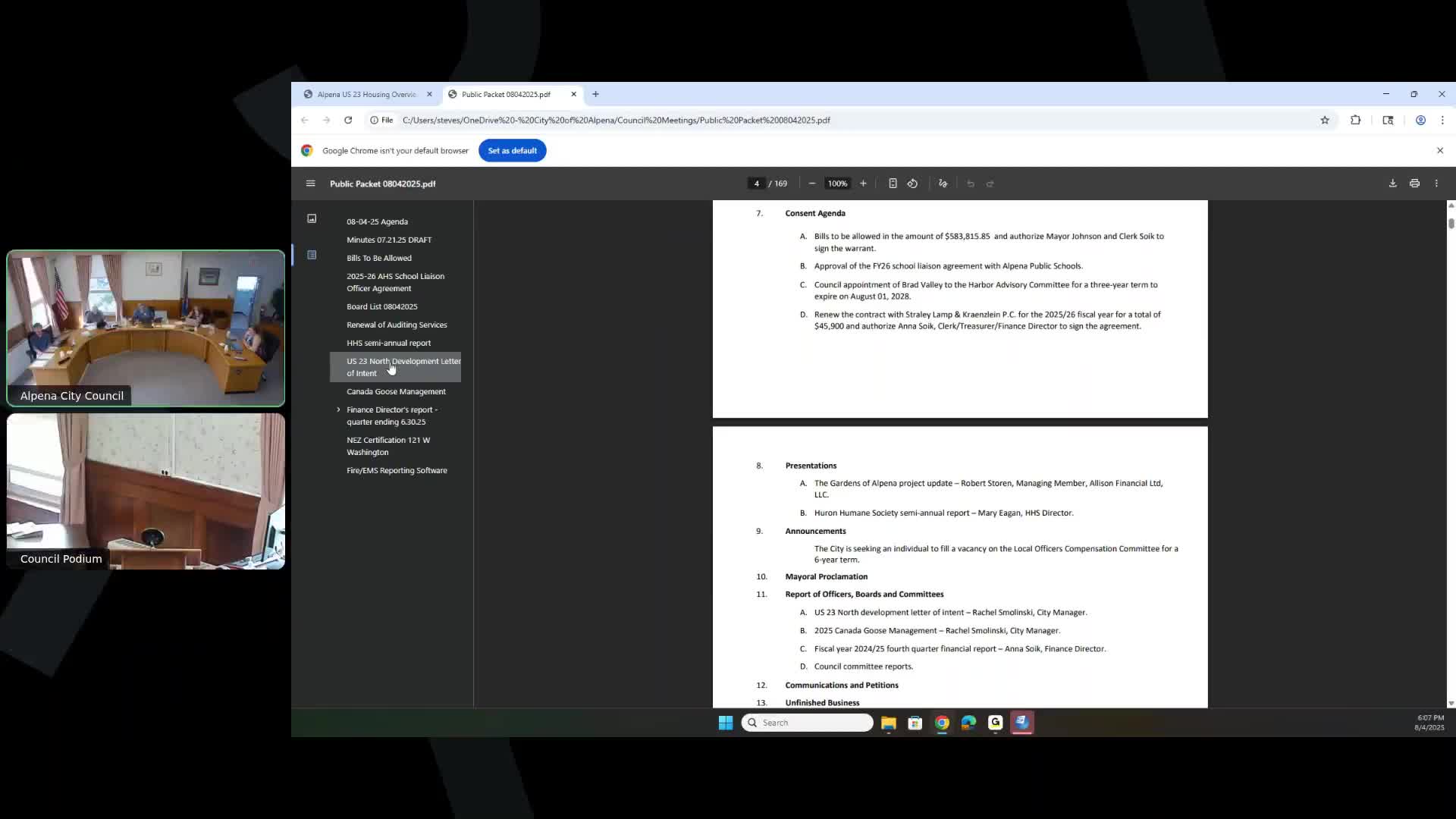 Developers and council approve modified LOI for US‑23 North housing project; six‑month study period set