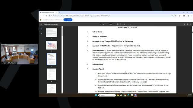 Alpena council approves consent agenda including cemetery deeds, grant extension and noise variance