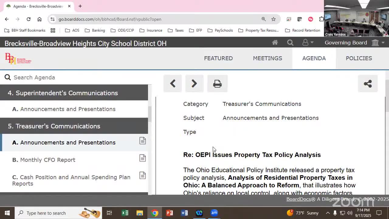 Treasurer briefs board on OEPI property‑tax analysis as state tax changes put more burden on homeowners