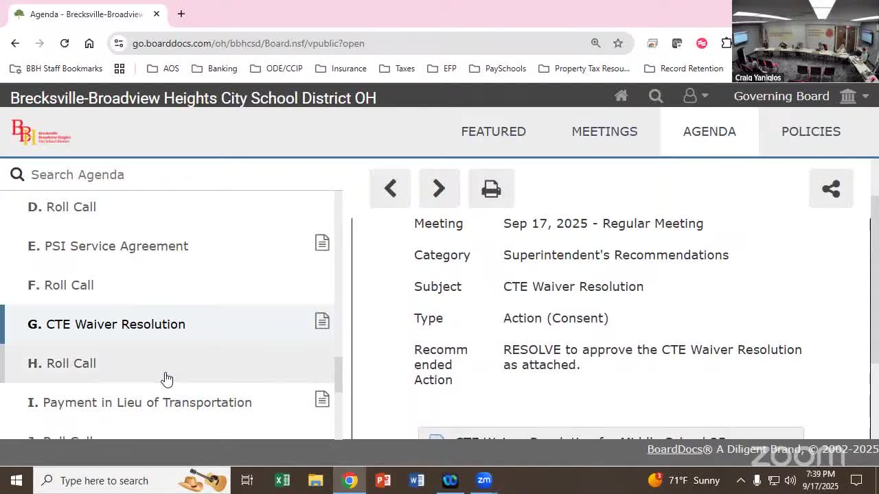 Board approves CTE waiver for 2025–26; district must expand career‑tech offerings going forward
