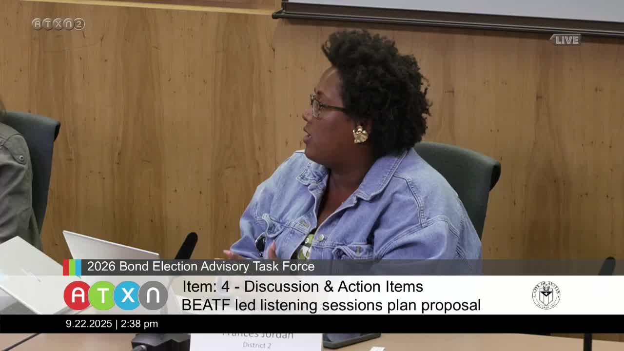 Task force details November listening sessions and accessibility plans for bond outreach