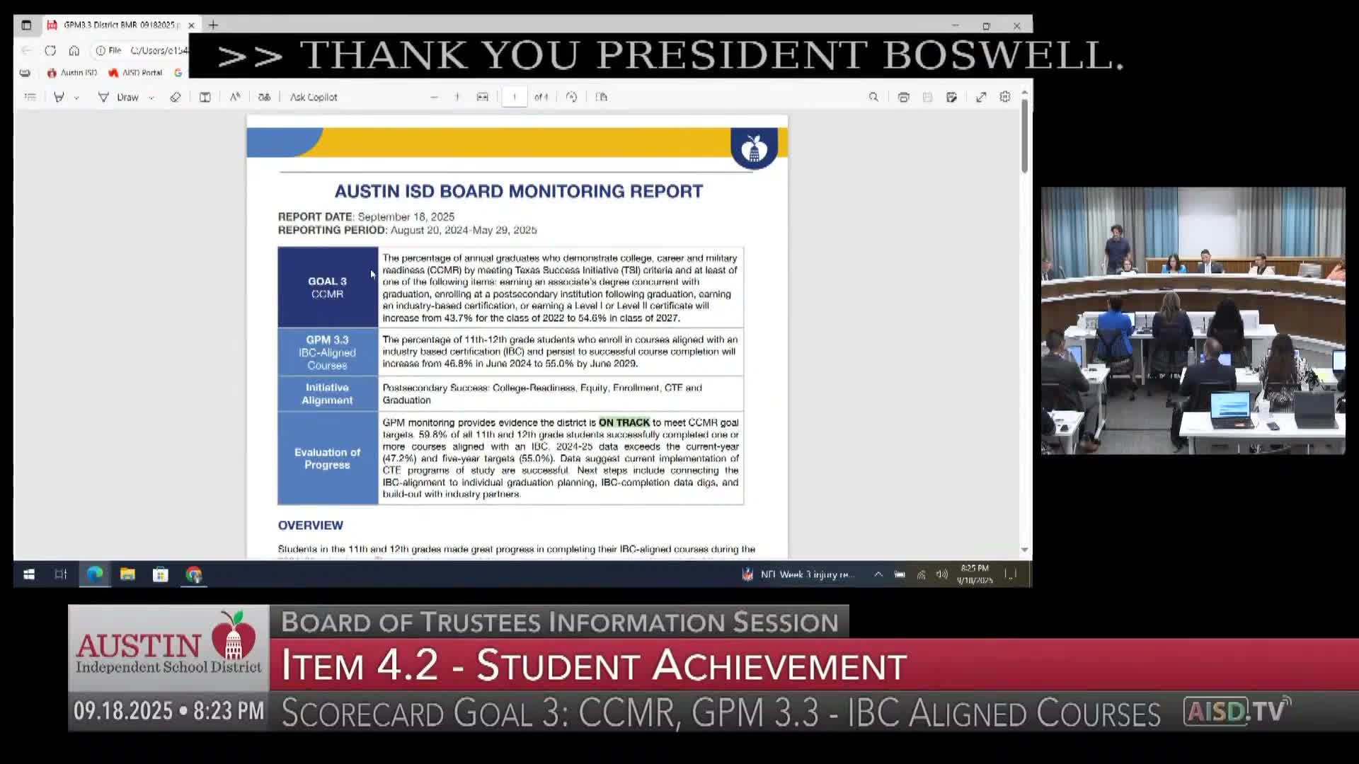 Austin ISD reports jump in industry‑aligned course completion; trustees accept CCMR monitoring report
