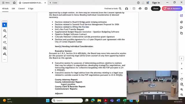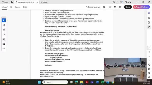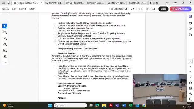 Montezuma County approves August payables; administrators report higher dispatch cost share and fleet work