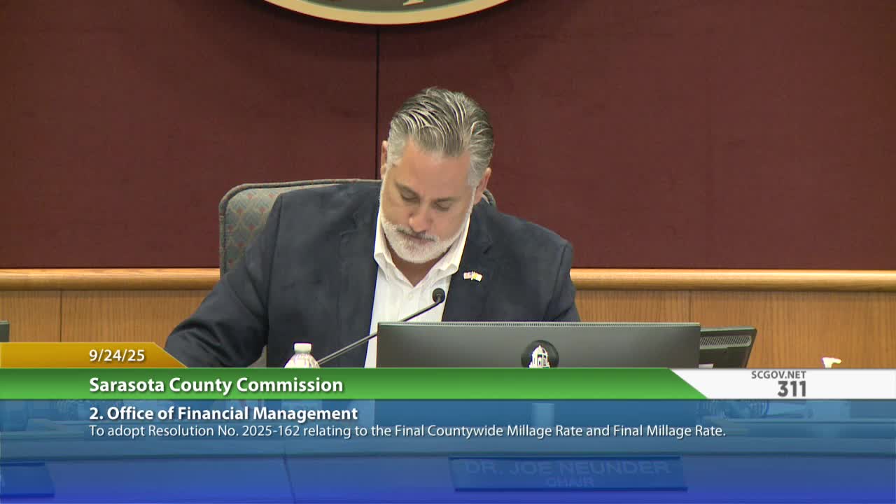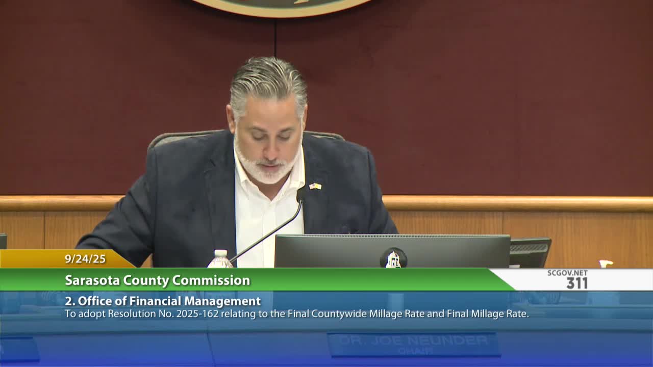 Sarasota County adopts final FY2026 millage rates and budget; commissioner objects to use of reserves